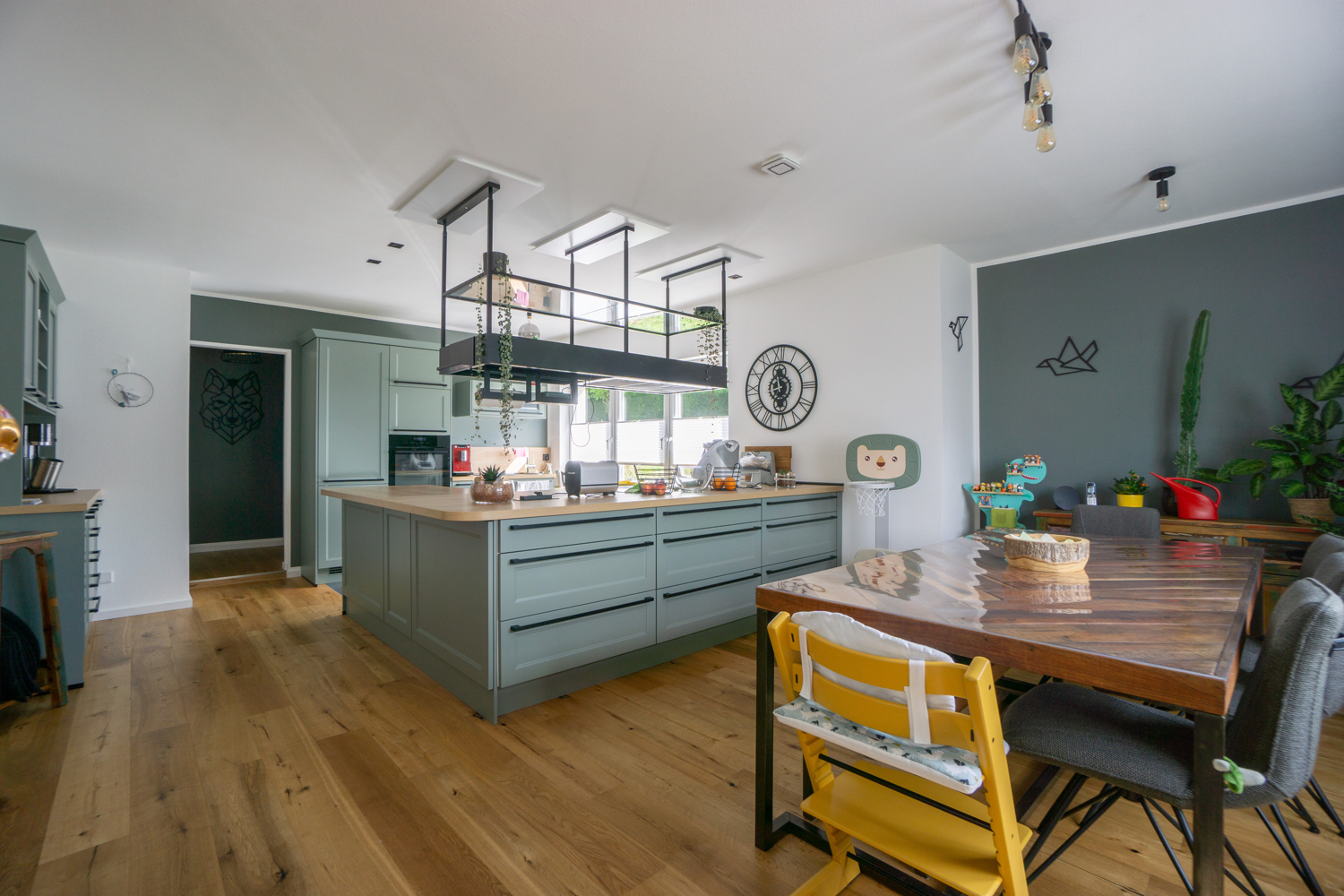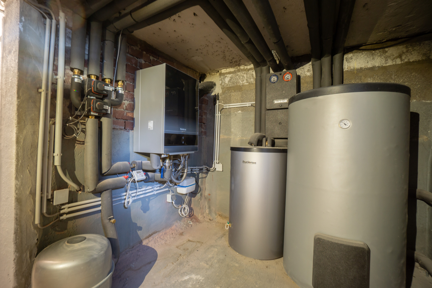 Das Ursprungshaus ist unterkellert. Neben reinen Vorratsräumen ist hier die 2020 installierte Luft-Wasser-Wärmepumpe untergebracht, mit der Sie für die Zukunft erst einmal bestens aufgestellt sein sollten.