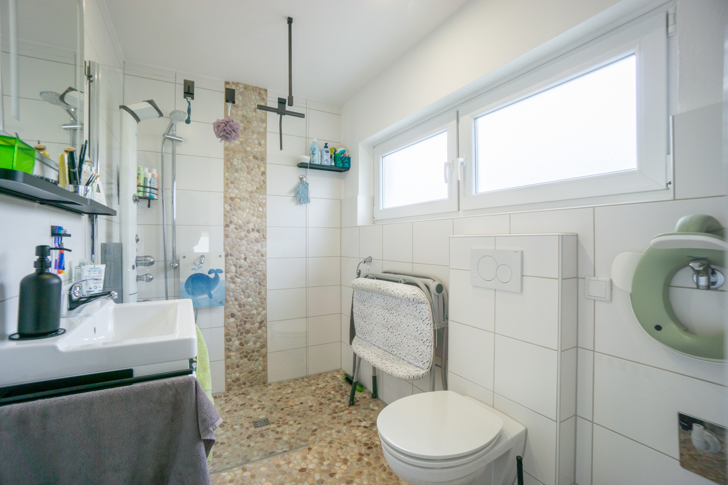 Neben einem Schlafzimmer, einem Abstellraum sowie dem Windfang des Anbaus runden 2 vollwertige Duschbäder diese individuelle Gestaltung ab.