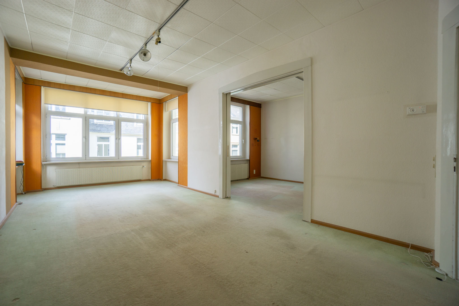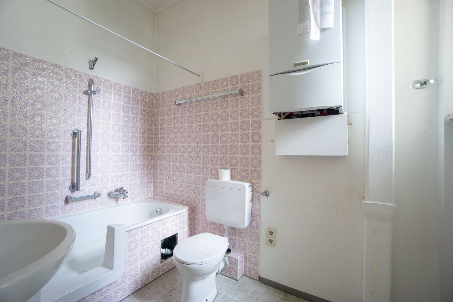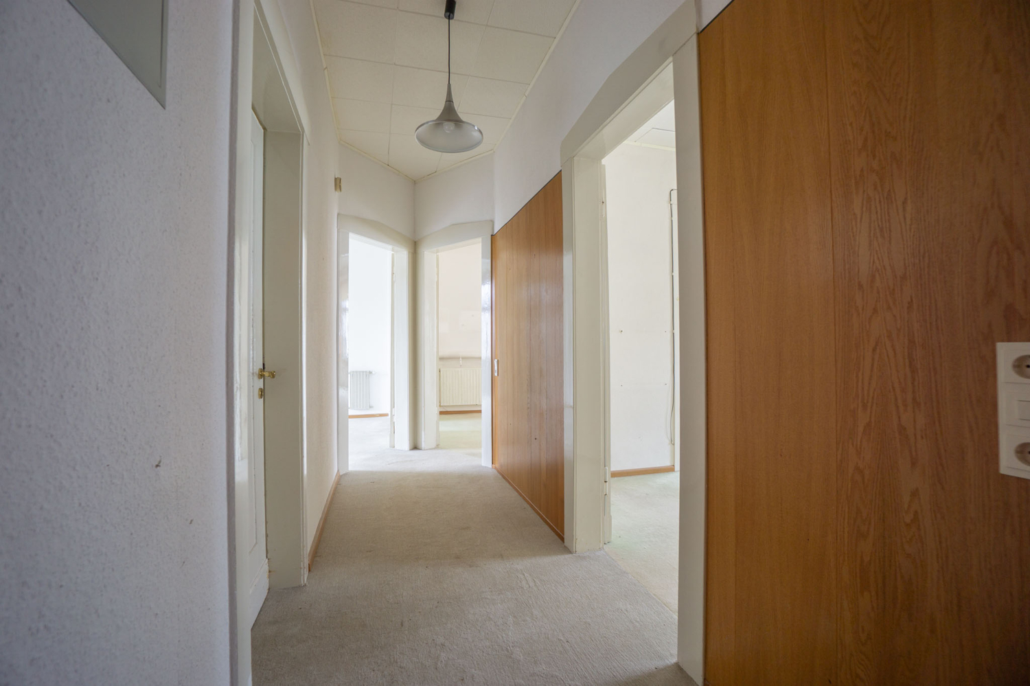 Die Eigentumswohnung befindet sich im 2. OG eines Mehrfamilienhauses mit 8 Parteien, das ursprünglich in 1914 erbaut wurde. In 1953 wurde es, nachdem es im Krieg zerstört wurde, auf dem massiven Keller wieder aufgebaut.